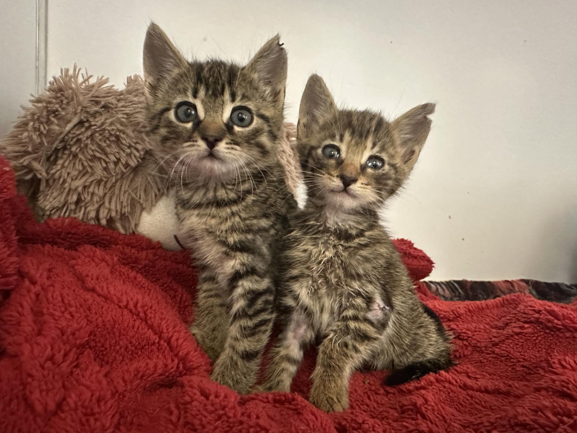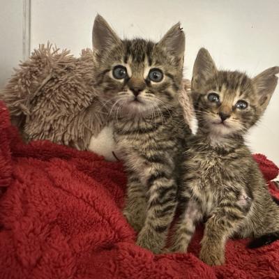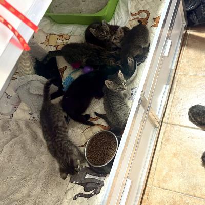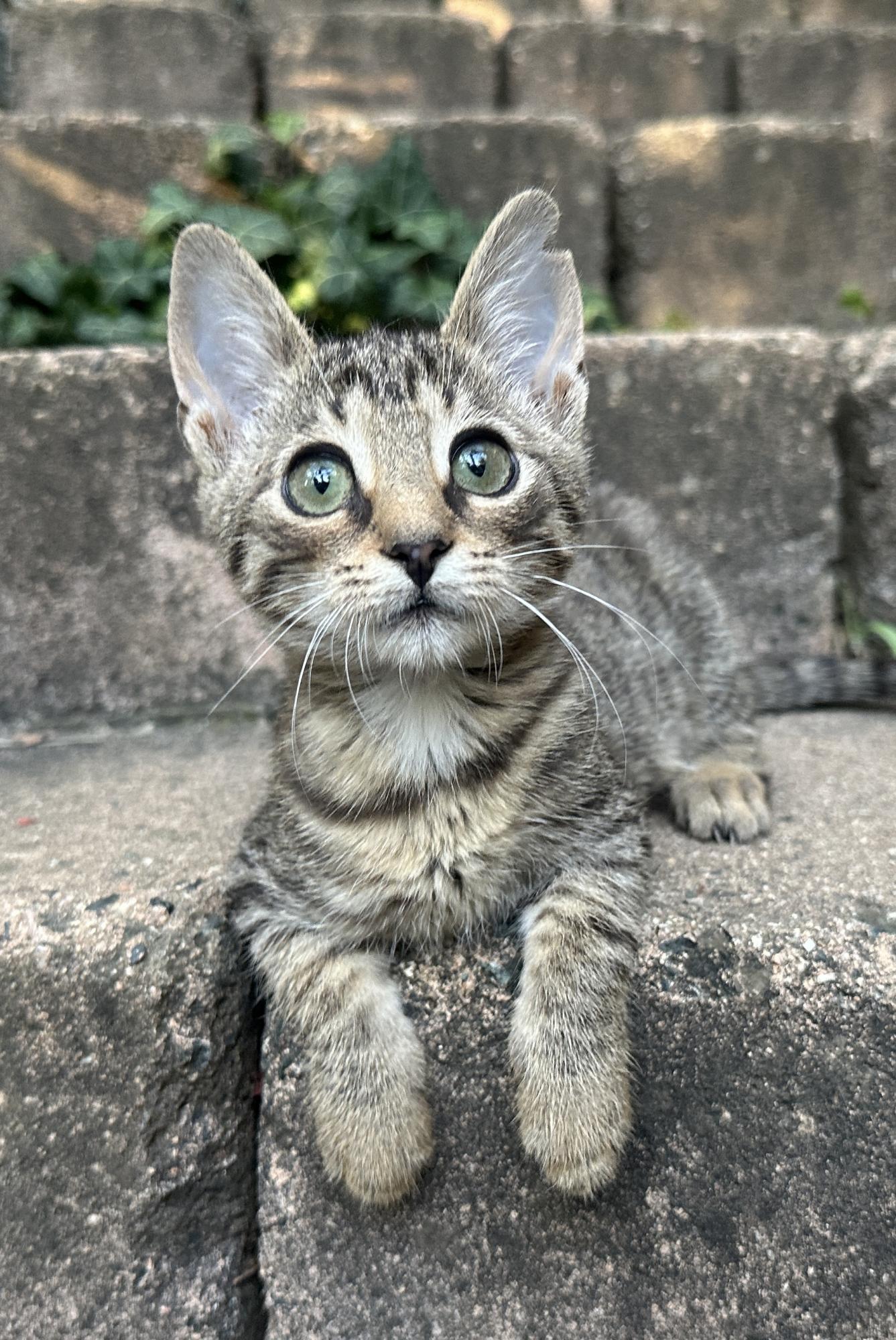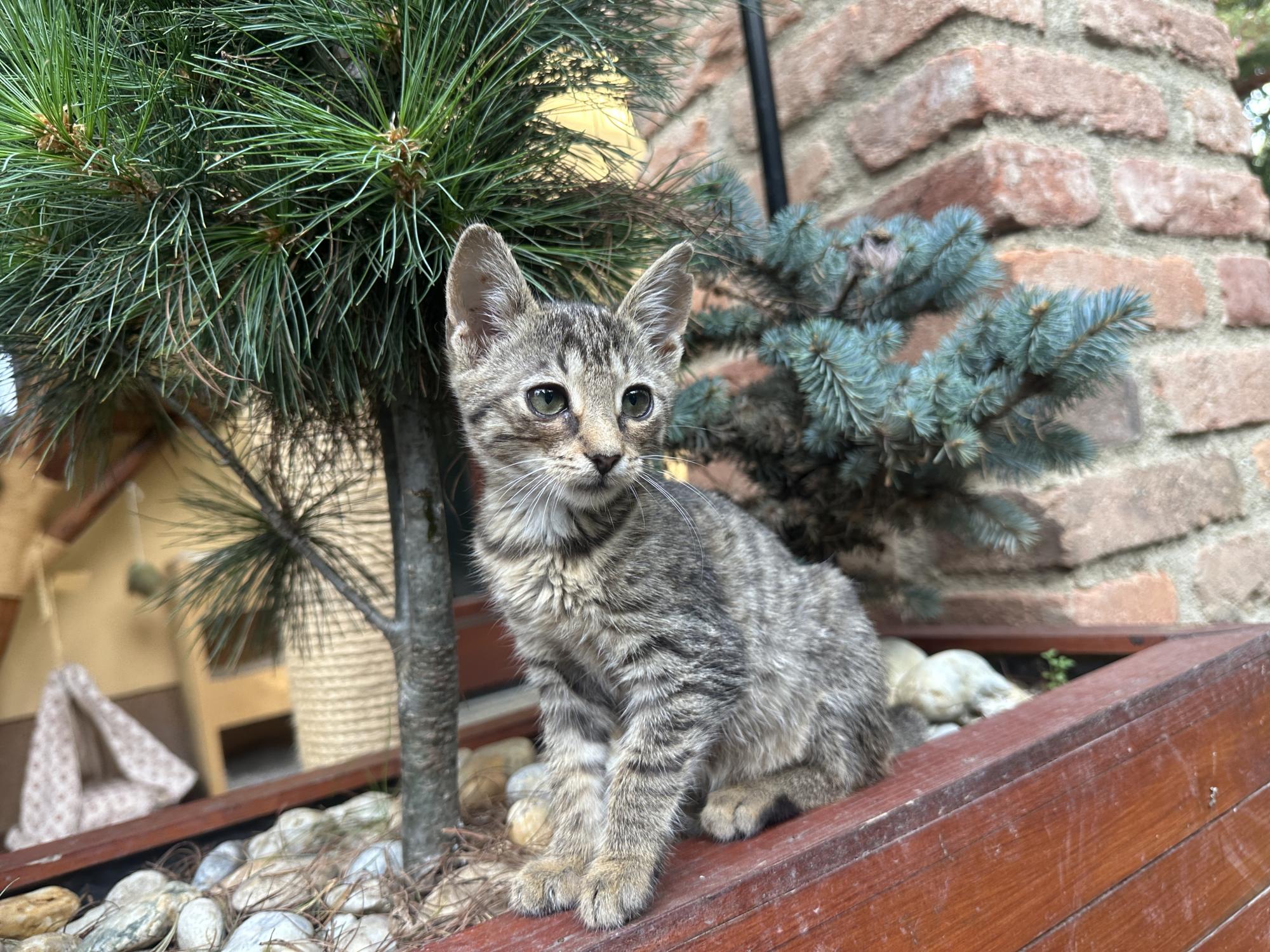 4 týdny staré kotě nělezeno vykastrované, bez rekonvalescence a v dezolátním stavu, včetně poškozeného kloubu přední nohy.