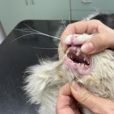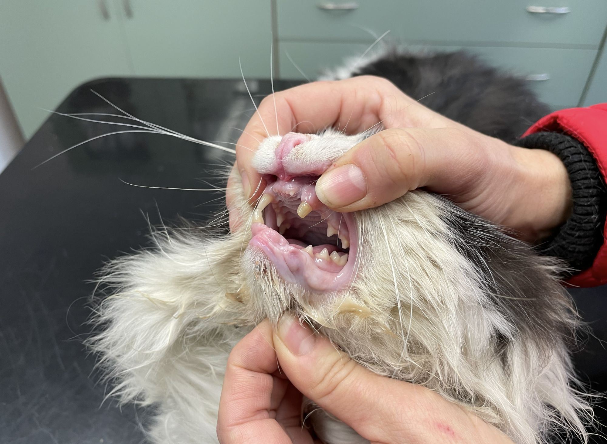 | Anamnéza: | svrab, začervení, shilé zuby, FIV pozitivní |