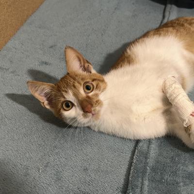 nalezený a extrémně mazliví kocourek Justin se u nás moc neohřál, ještě než jsme ho stihli nahlásit obci, ozvali se majitelé a kocourek se k nim vrátil