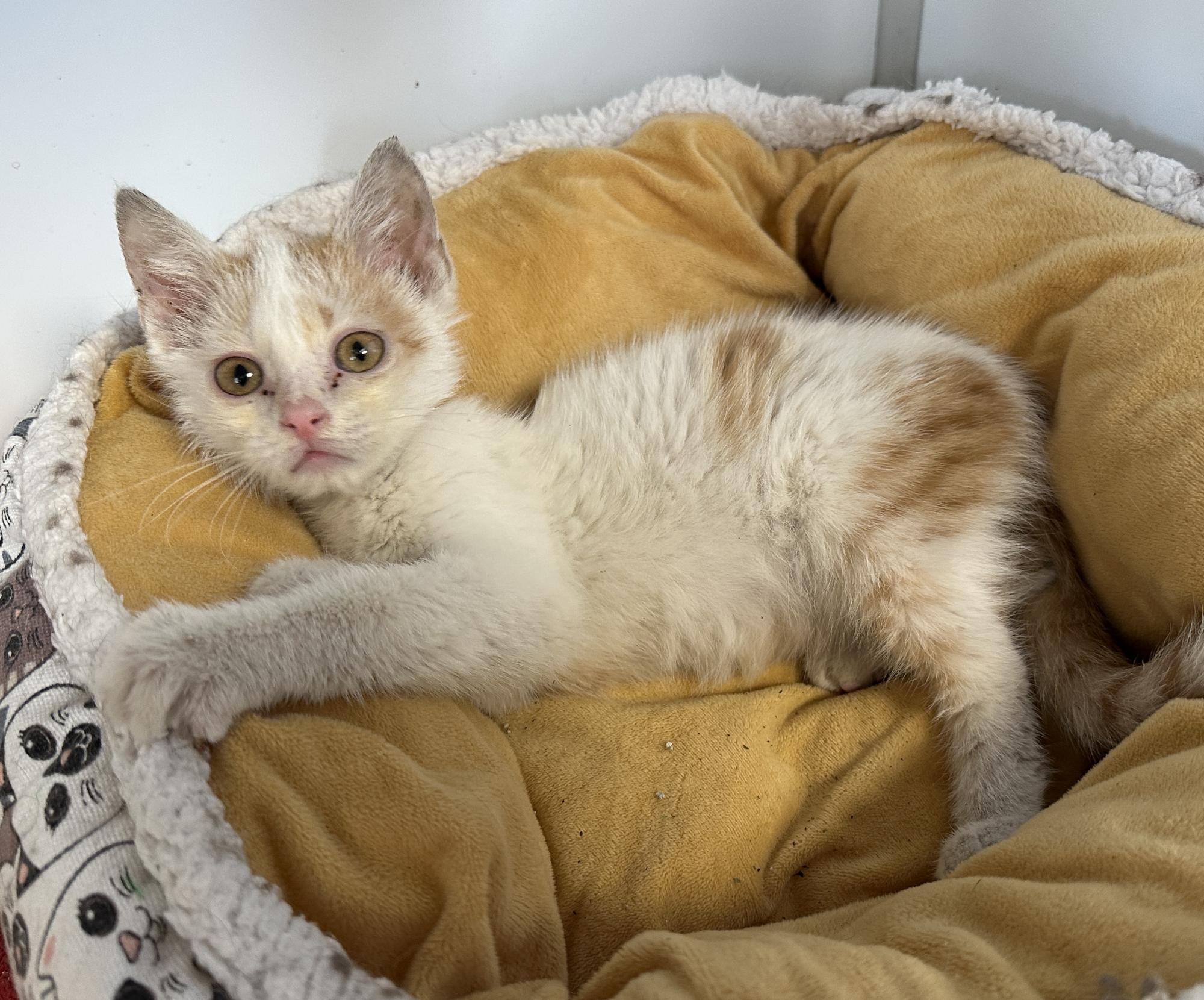 Kocourek byl nálezcem (chovatelem) dovezen na kastraci v necelých dvou měsících. Pro zbědovaný stav a nevhodné chování chovatele, jsme odmítli kočku navrátit pro podzření ze zanedbávání péče a usmrcování koťat. Po intenzivní péči je Ross vyléčen a uchází se o novou rodinu.