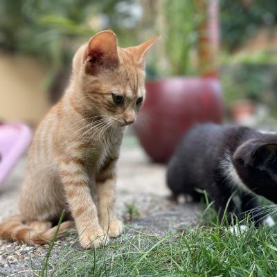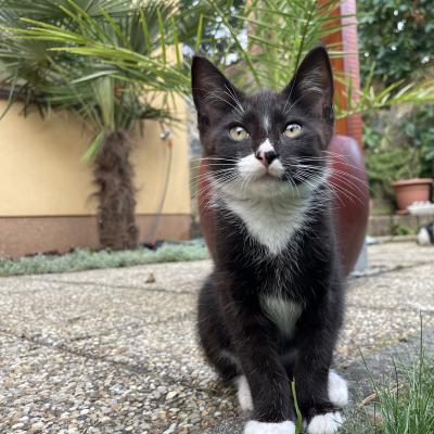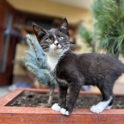 Do útulku byl přijat jako čerstvě narozené kotě, společně se sourozenci a matkou.