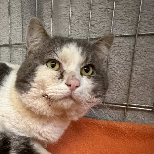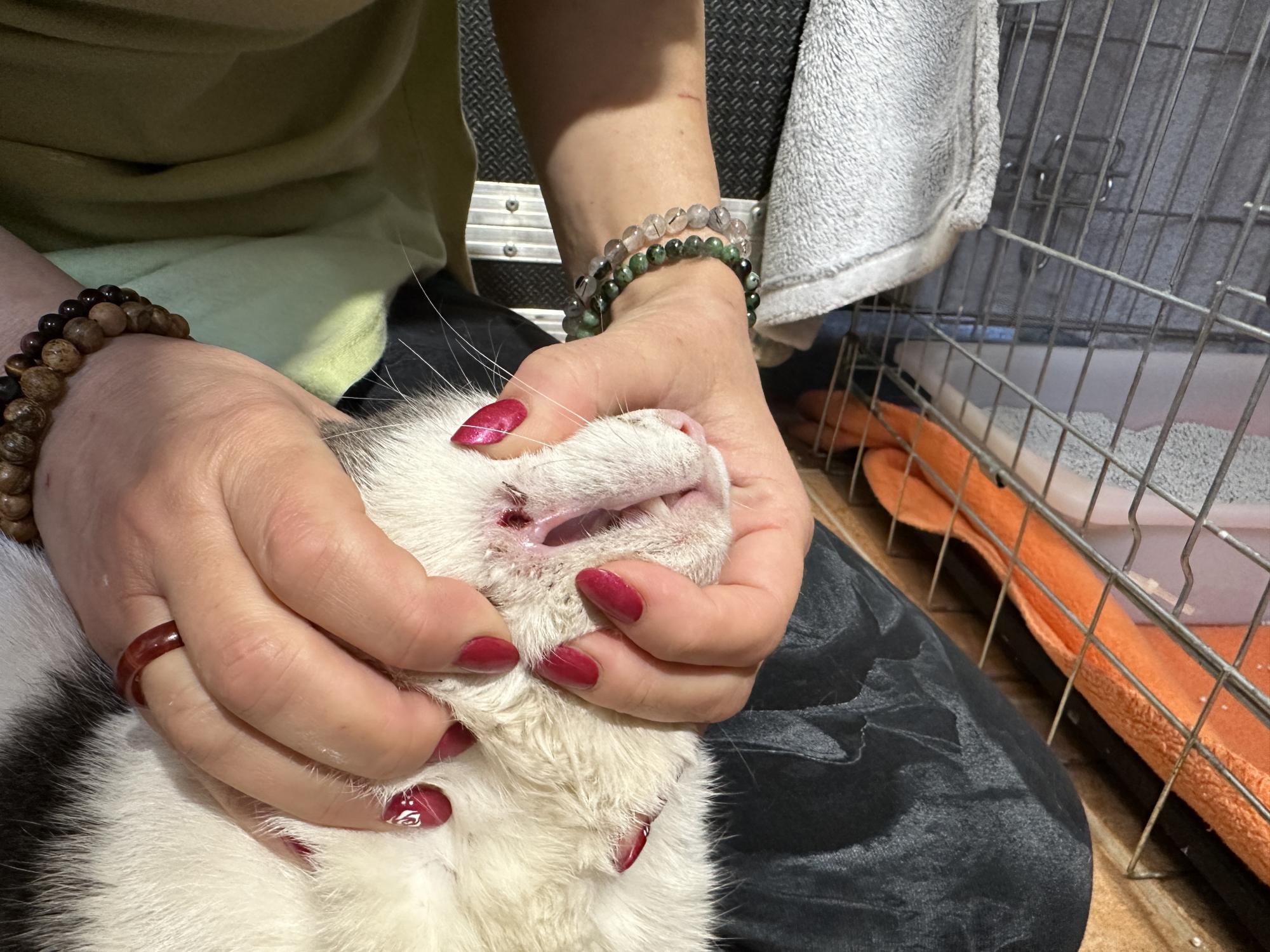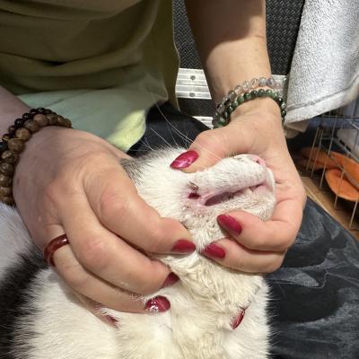 | Anamnéza: | Mladý mazlivý kocour s rankou v koutku tlamy. |