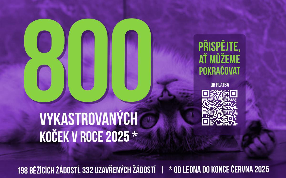 Díky vám se kastrace stává běžnou a samozřejmou součástí péče o zvířata. A i když čísla vypadají skvěle, víme, že práce nekončí. Budeme rádi, když nás budete podporovat i dál – sdílením informací, zapojením vaší obce nebo drobným příspěvkem, který nám pomůže pokračovat ve stejném tempu i v příštích měsících. Každá vykastrovaná kočka znamená stovky životů, které nemusí skončit v útulcích nebo na ulici.