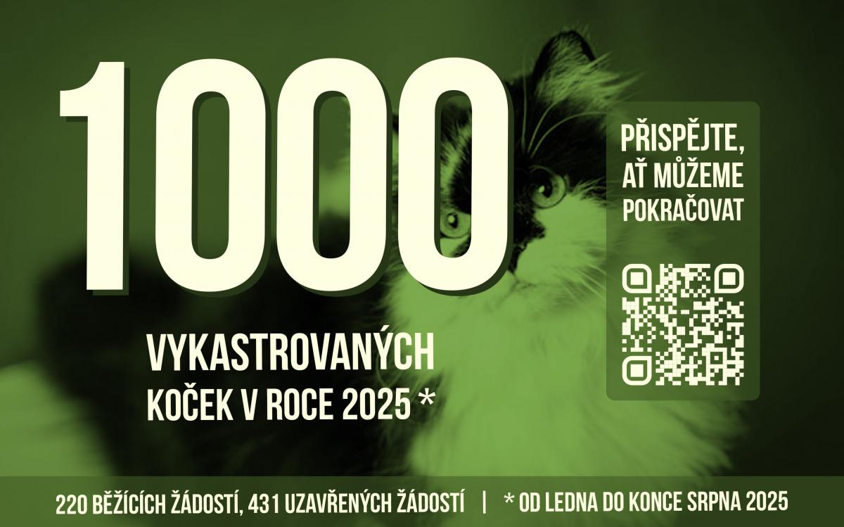 Od ledna do konce srpna letošního roku se nám společně podařilo v rámci našeho programu vykastrovat 1 000 koček. Z toho 431 žádostí bylo již uzavřeno a dalších 220 právě probíhá. Každé z těchto zvířat představuje konkrétní příběh — a především krok k tomu, aby bylo méně toulavých, opuštěných nebo nechtěných koťat.